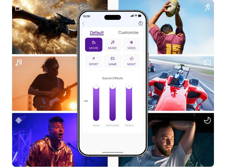 Instantly switch to the best sound for movies, music, games, voices, sports and night.